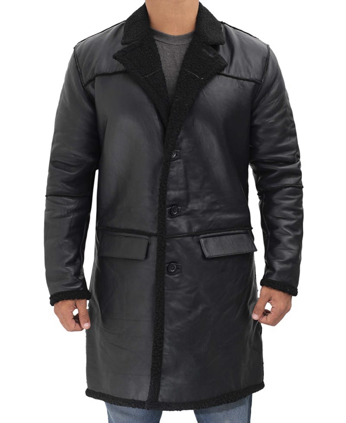 Men’s 3/4 Length Black Real Leather Coat