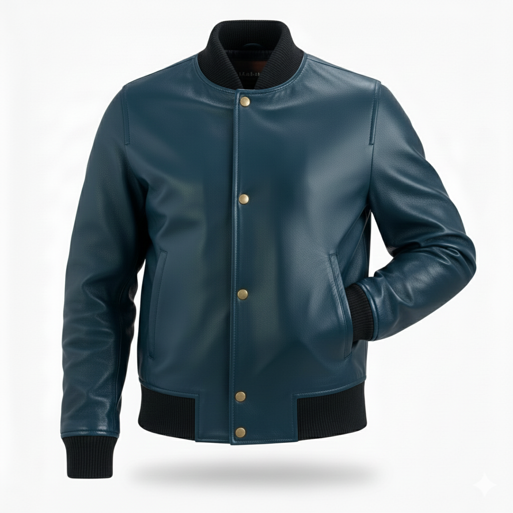 Men’s Blue Real Leather Bomber Jacket