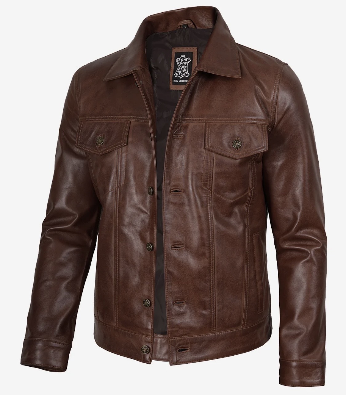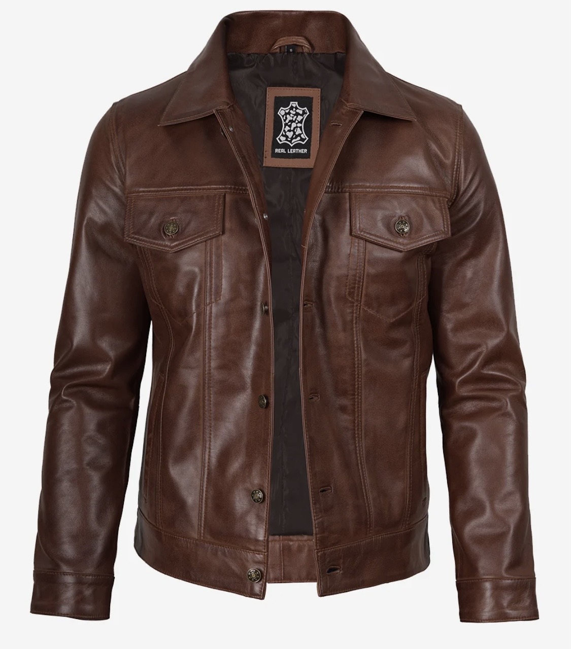 Men’s Four Packets Cognac Real leather trucker Jacket