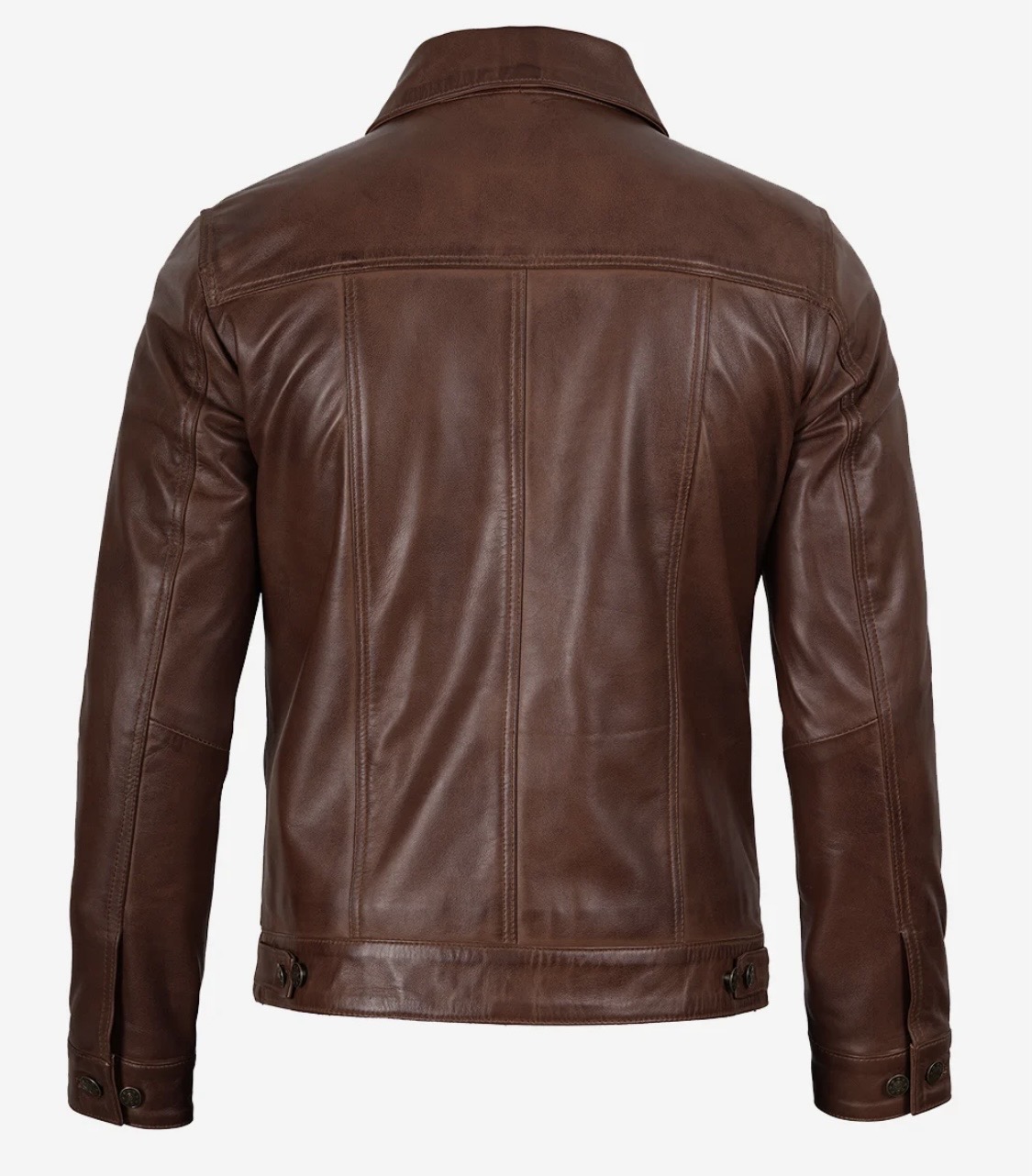 This leather trucker jacket is built for effortless style. The clean shirt-style collar, button-front closure, and structured silhouette create a sharp, confident look. Finished in smooth leather, it instantly upgrades casual outfits and adds a bold, modern edge to your everyday wardrobe.