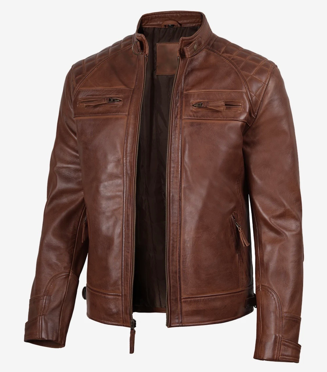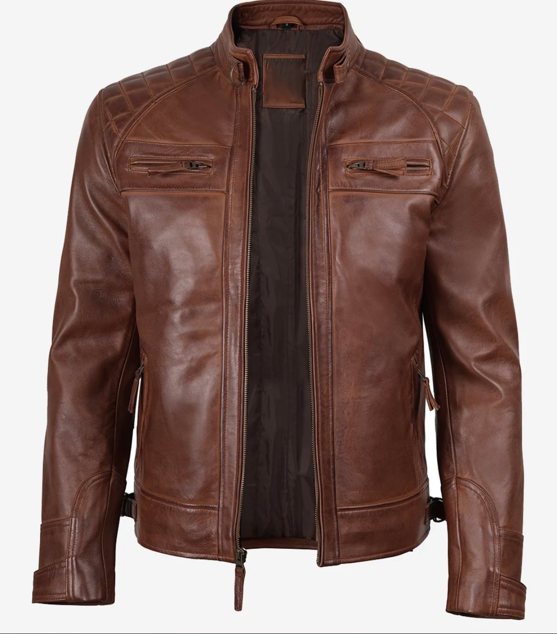 Upgrade your wardrobe with this men’s cognac waxed biker style leather jacket. crafted from premium leather, it features a sleek, streamlined design for a stylish edge. Perfect for party or casual outings, this jacket combines comfort and bold fashion effortlessly.