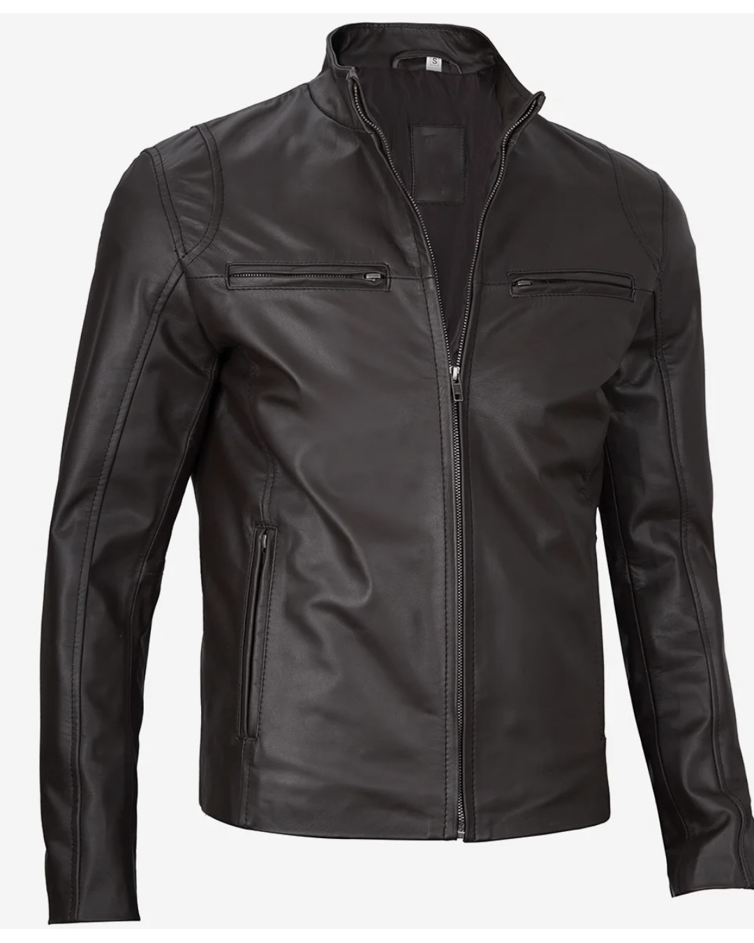 Upgrade your style with our Men’s Black Real Leather Cafe Racer Inspired Jacket. Crafted from premium lambskin leather, it’s a timeless addition to your wardrobe. Perfect for motorcycle enthusiasts and fashion-forward individuals. Ride in style with this iconic biker jacket..