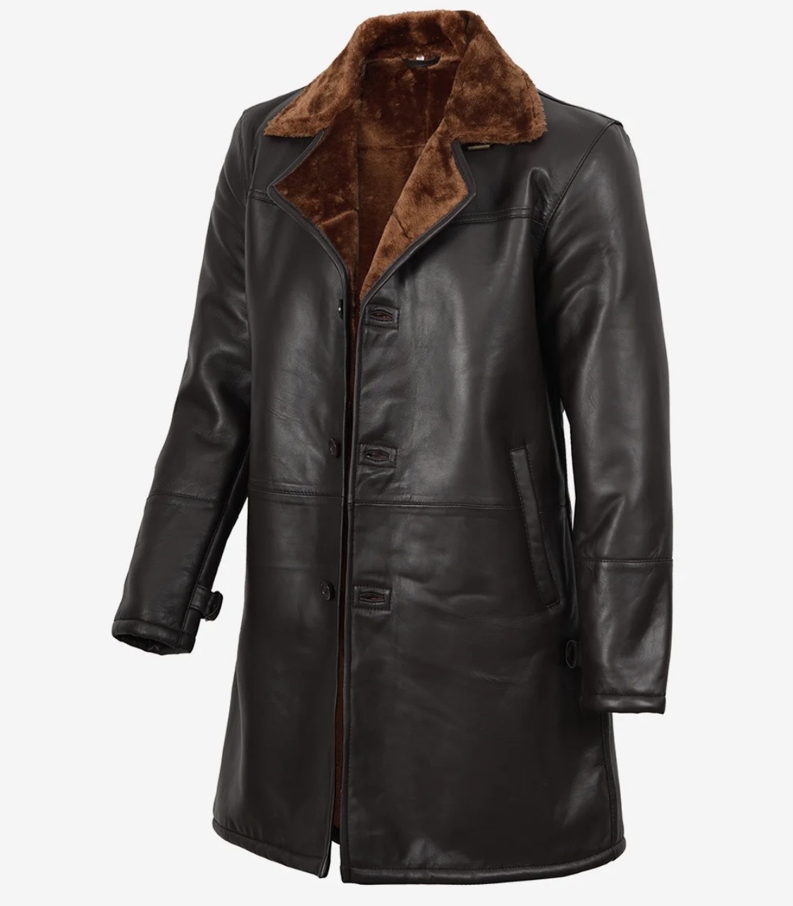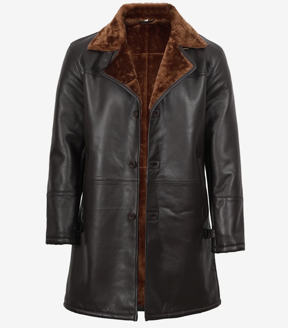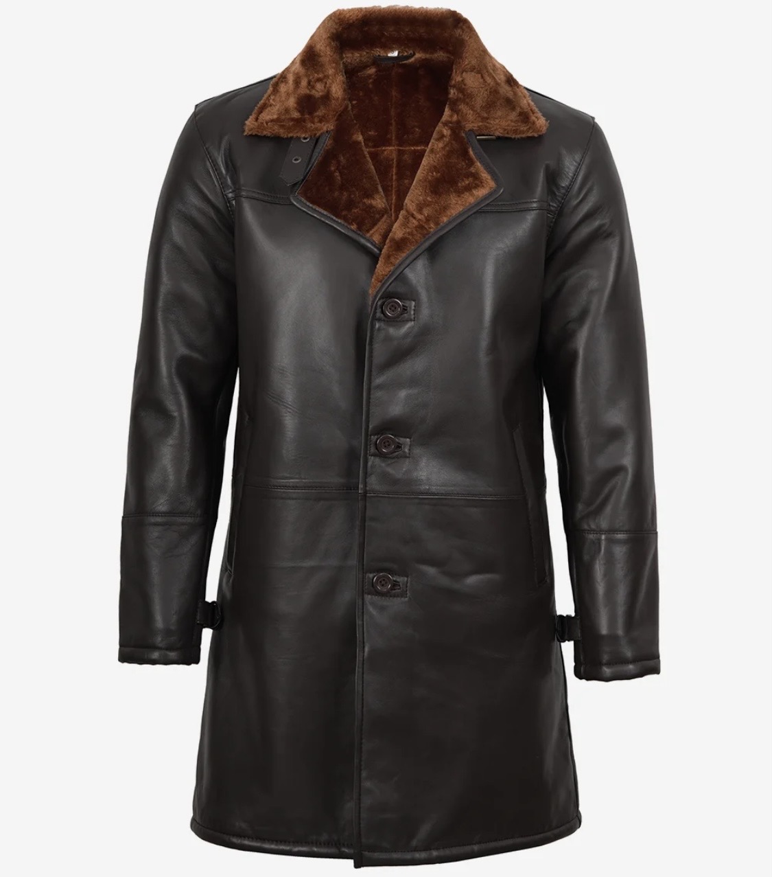 This dark brown shearling coat delivers warmth and style in one clean look. The three-quarter length gives you coverage without feeling bulky, and the real leather exterior adds a rugged, polished feel. With soft shearling lining and a classic cut, it’s an easy go-to for cold weather and everyday layering.
